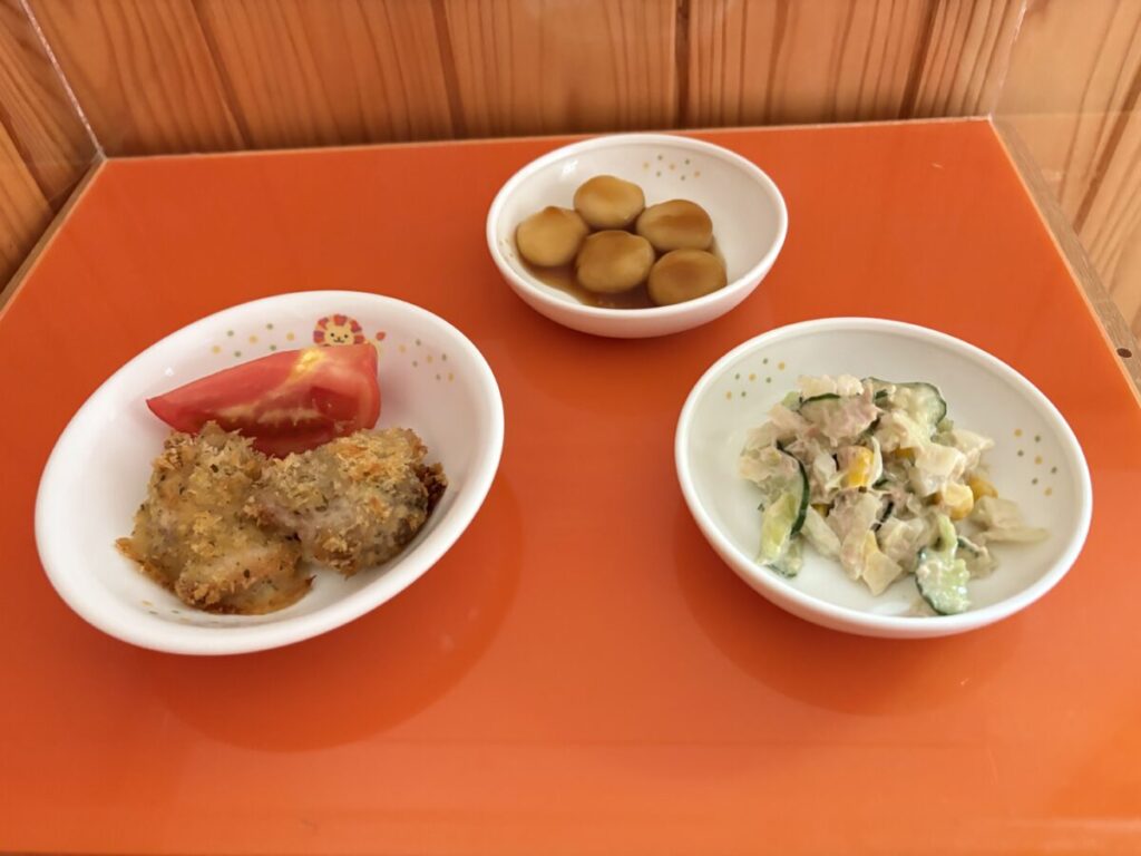 十五夜にちなんで、今日のおやつはお月見団子でした。