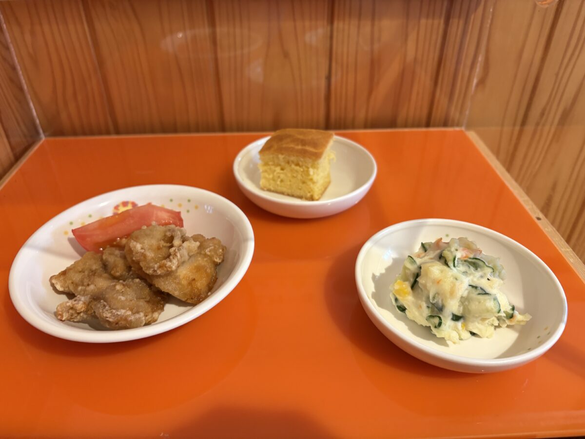 10月20日(月)「からあげ・ポテトサラダ」おやつ「パウンドケーキ」