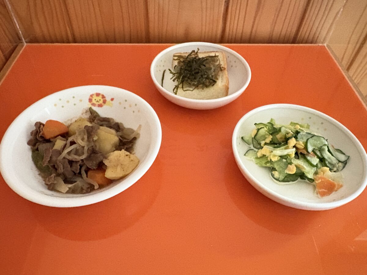 明日は、お弁当の日です。お弁当とおやつの準備をお願いします。