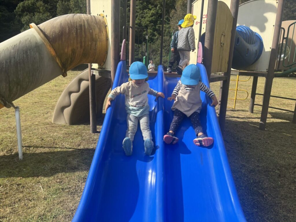 「いくよ?せーの!」と二人仲良く滑り台を楽しんでいたお友達♡