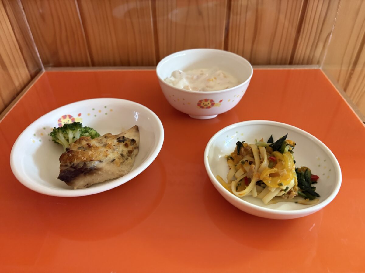 15時のおやつは、フルーツヨーグルトでした。「ヨーグルトおいしー」と、モリモリ食べる子ども達でした。