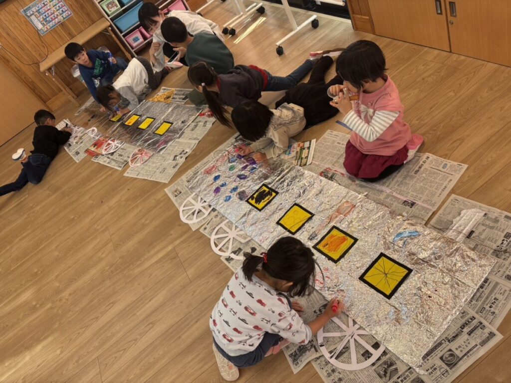 「〇〇描こう」「あっ、それいいねぇー」と、お友達との会話を楽しみながら描いていました♪