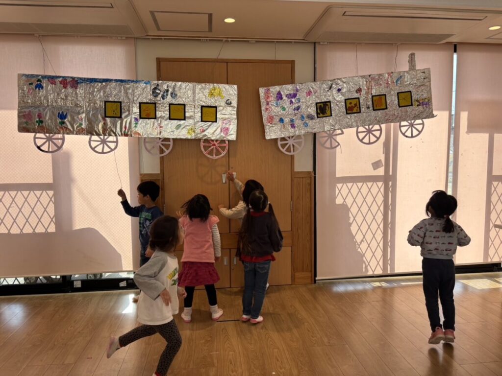 完成した電車を飾ると、大興奮!大喜びの子ども達でした!