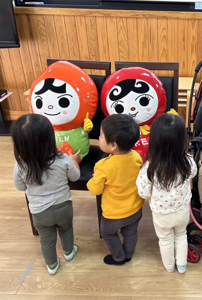 人権マスコットキャラクターの、「まもるくん」と「あゆみちゃん」に興味津々の子ども達でした♡