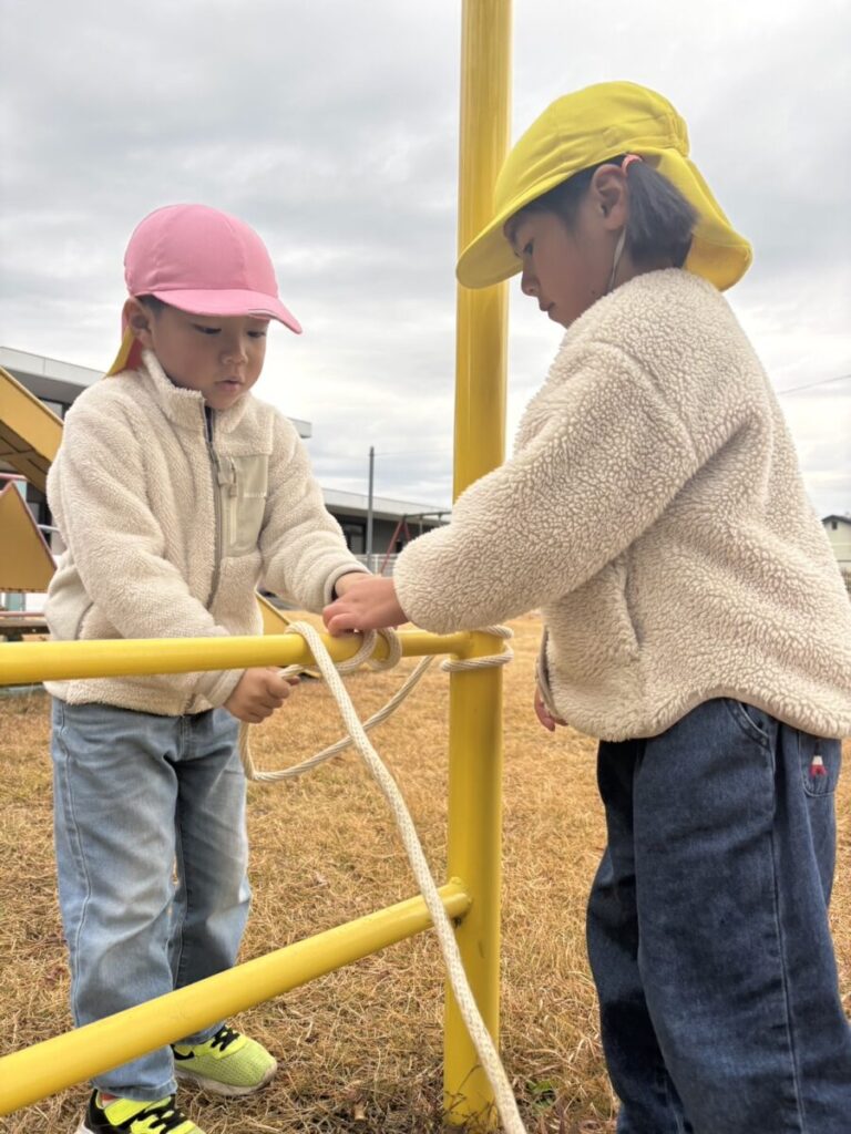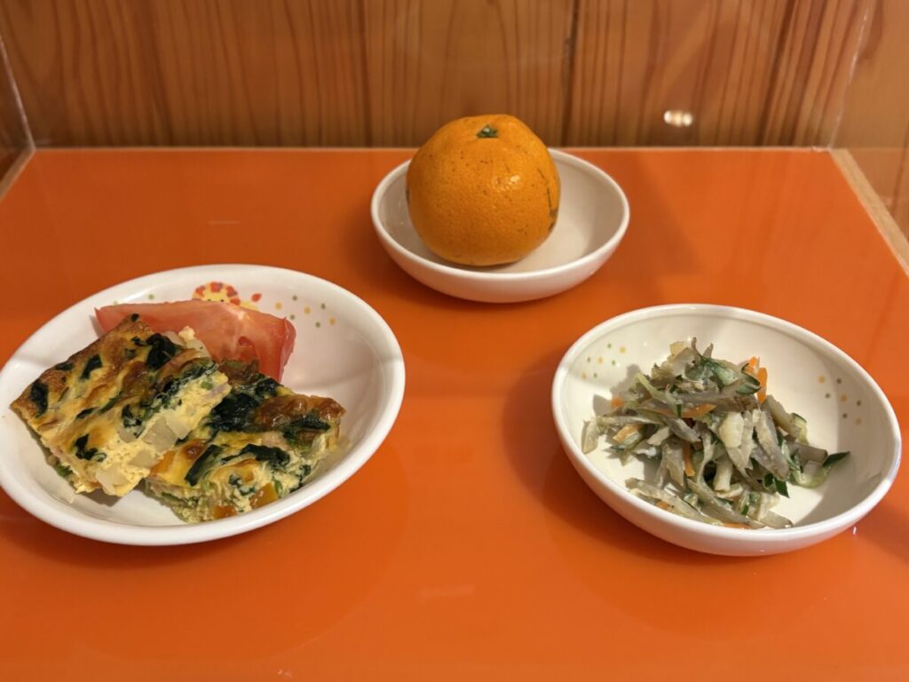 12月11日(木)「スパニッシュオムレツ・カミカミサラダ」おやつ「みかん」 今日の給食 2025.12.11 今日の1枚。 昨日のダンス教室での、新聞紙を使った縄跳び遊びを思い出しながら、縄を回して楽しんでいました♡
