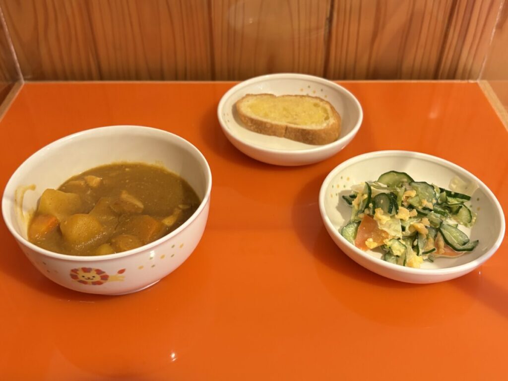 12月15日(月)「カレーライス・玉子サラダ」おやつ「ラスク」