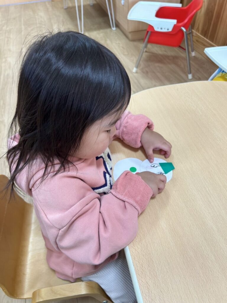 出来上がった雪だるまを「かわいい~」と言って、見つめるお友達でした♡