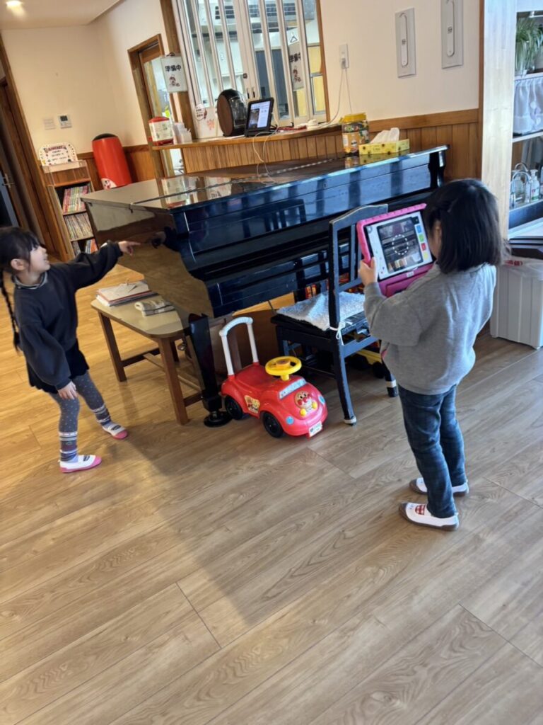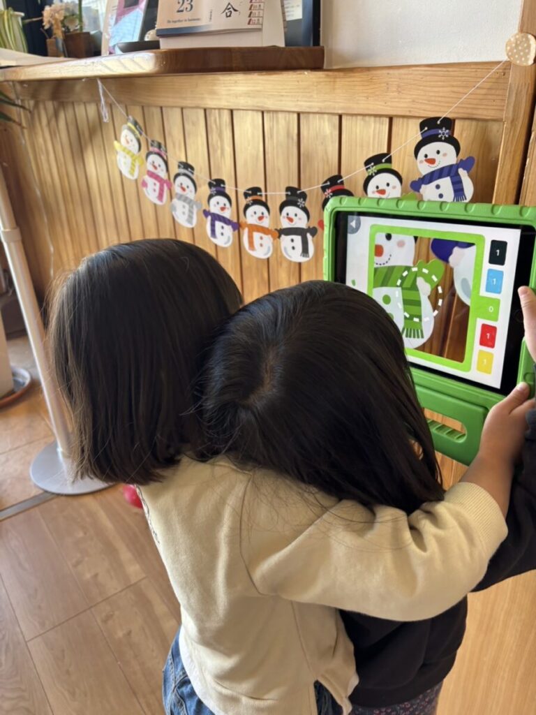 Kits遊びの活動中、仲良く色探しを楽しむお友達♡