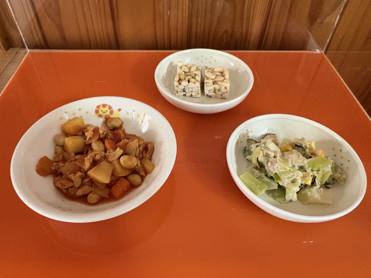 1月26日(月)「ポークビーンズ・ツナサラダ」おやつ「マシュマロおこし」