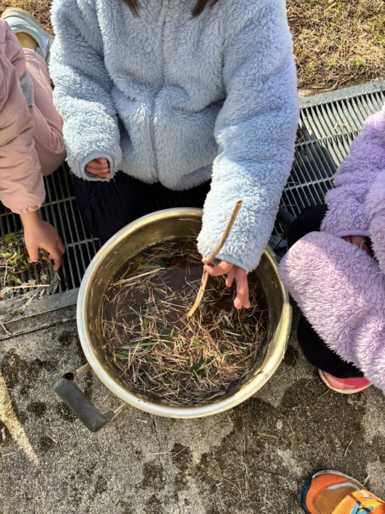 保育者:あっ、そうだ!先生、このお鍋で氷ができるか実験してみようかな?