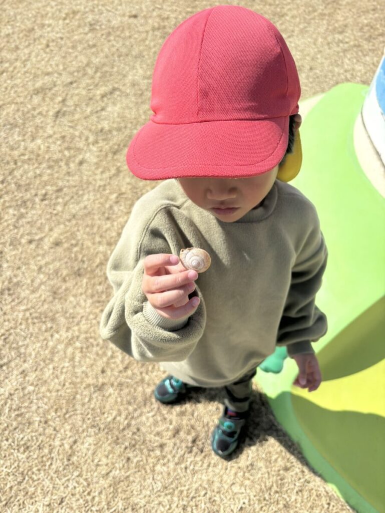 2月19日(木)「千草焼き・納豆・わかめスープ」おやつ「チーズスカロップ」 今日の給食 2026.02.19 今日の2枚。 木の下にカタツムリがいるのを発見したお友達。 とても大きいカタツムリさんで、手に取ってニコニコでした♡