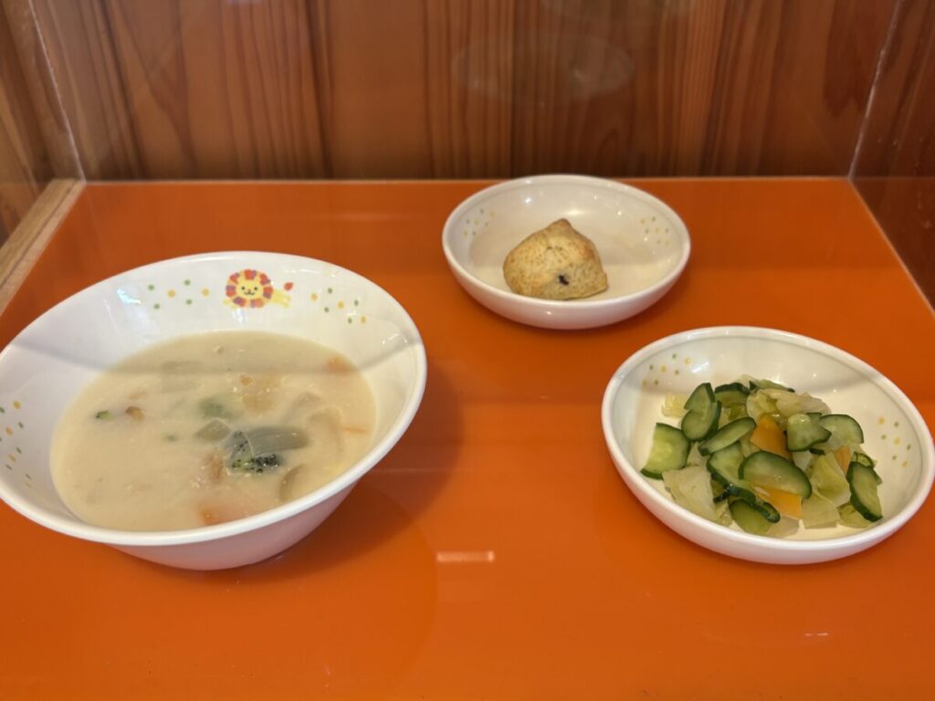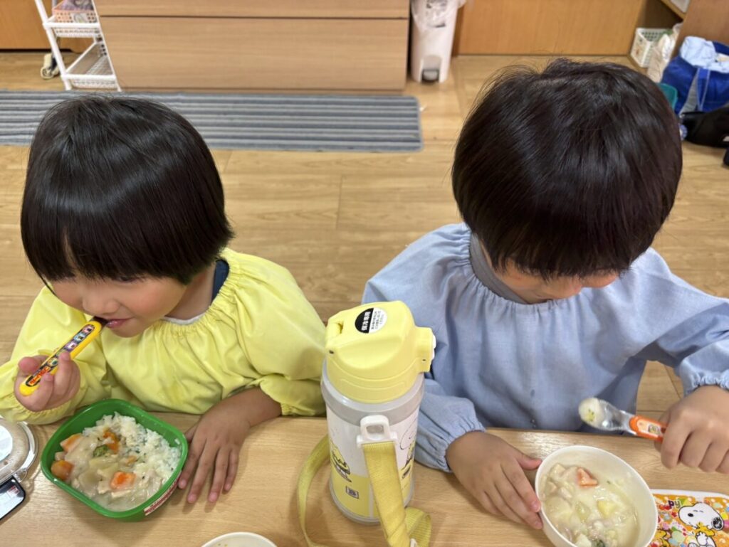 「シチュー美味しい♡」と、嬉しそうな子ども達。