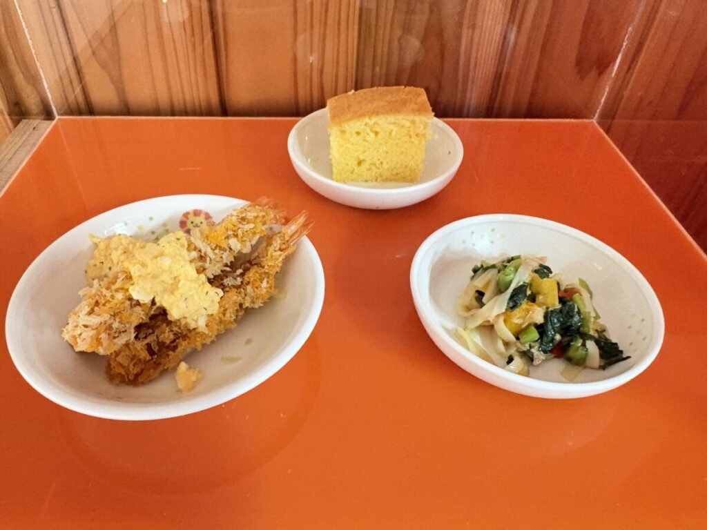 3月24日(火)「エビフライ・ビーフンサラダ」おやつ「パウンドケーキ」