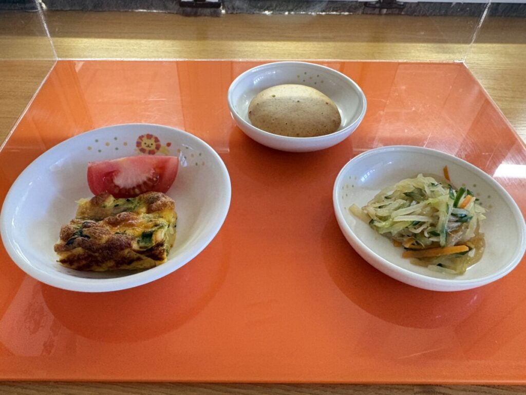 4月16日(木)「スパニッシュオムレツ・もやしのナムル」おやつ「丸ぼうろ」