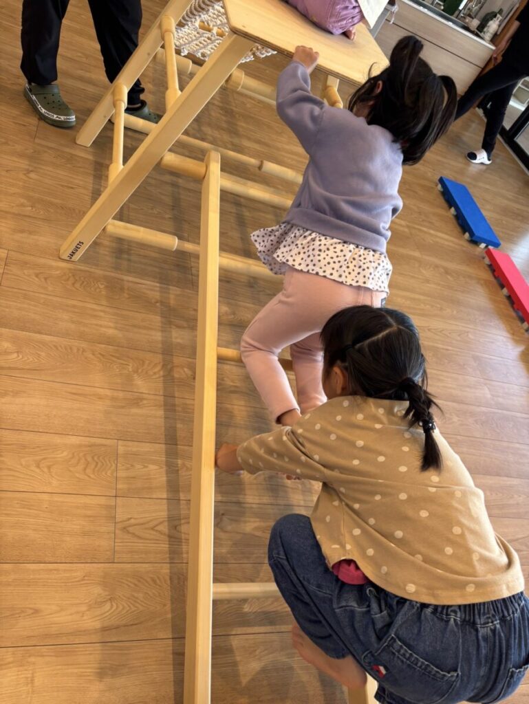 慎重に慎重に登ったり降りたり、歩いたりと楽しそうに遊んでいた子ども達。