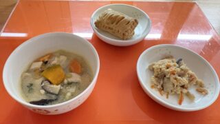 今日の給食 4月2日(火)「団子汁・卯の花」おやつ「アップルパイ」