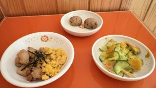 今日の給食 1月9日(金)「焼鳥丼・南瓜サラダ」おやつ「ちんすこう」