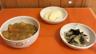 今日の給食 10月22日(水)「カレーライス・中華和え」おやつ「りんご」