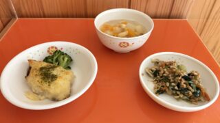 今日の給食 11月4日(火)「魚のこがね焼き・納豆和え」おやつ「フルーツポンチ」